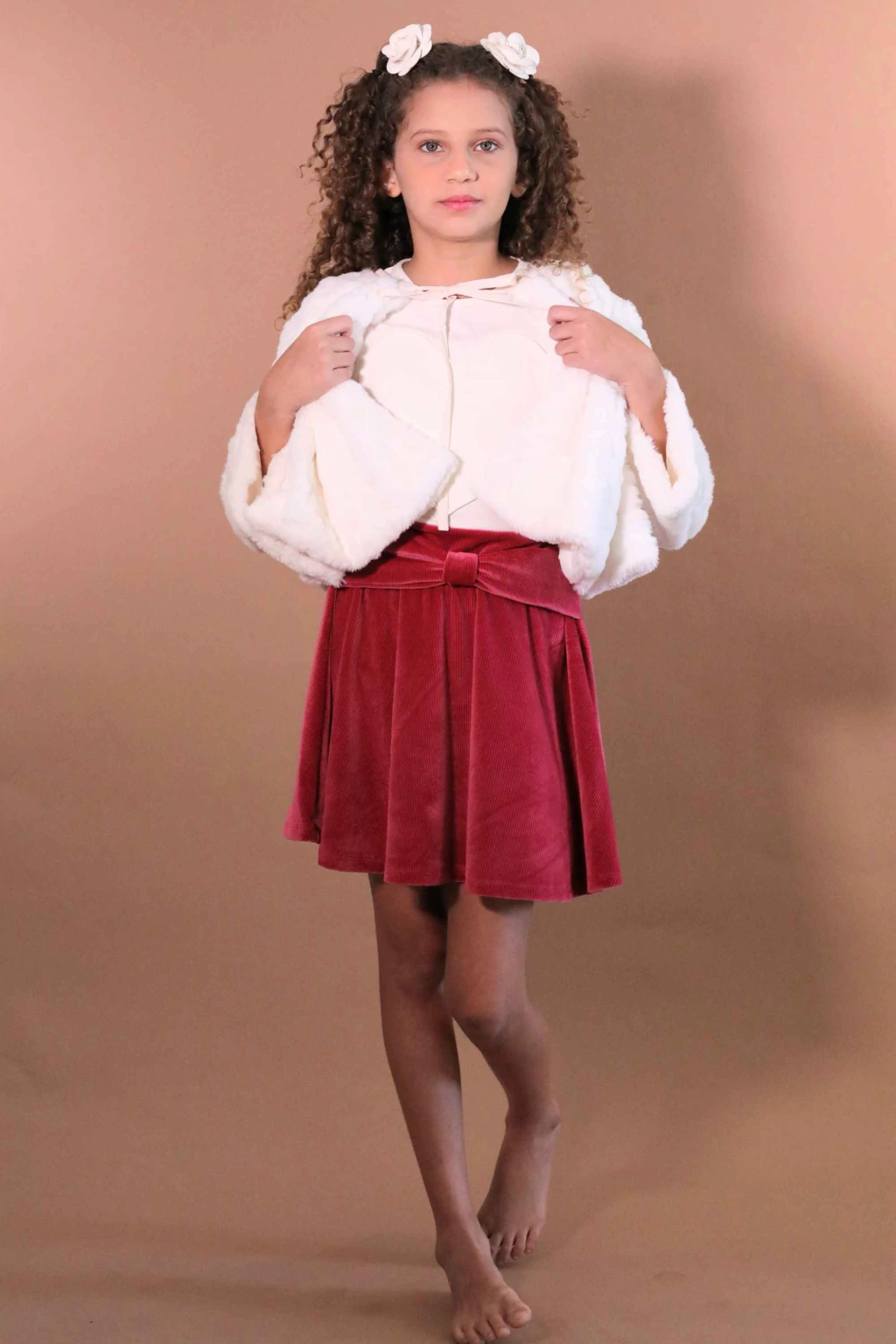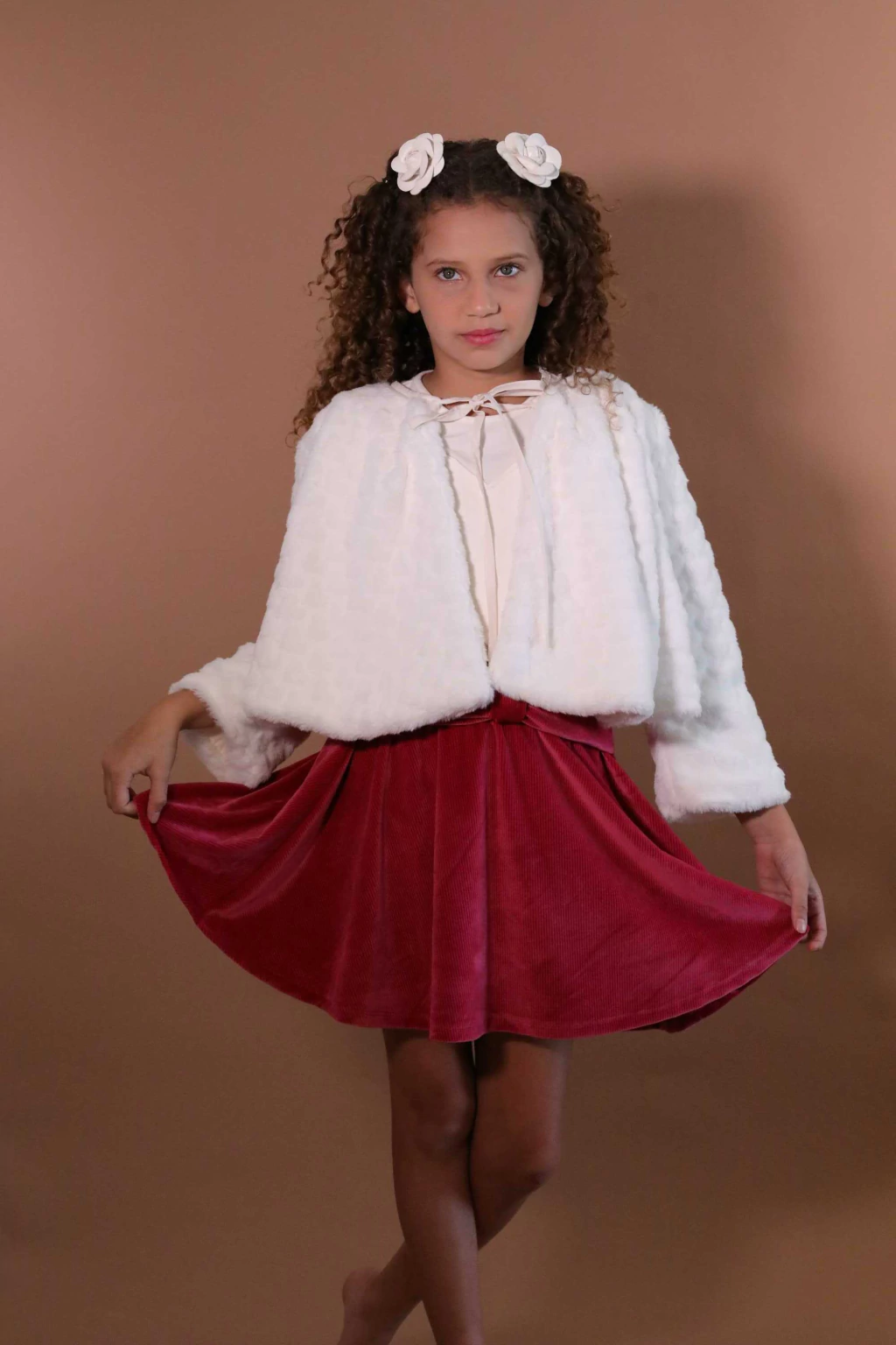 É a definição de elegância e aconchego. Confeccionado em tecido de pelúcia ultra macio, ele apresenta um tom branco clássico e sofisticado, perfeito para compor looks em dias mais frios com muito estilo.