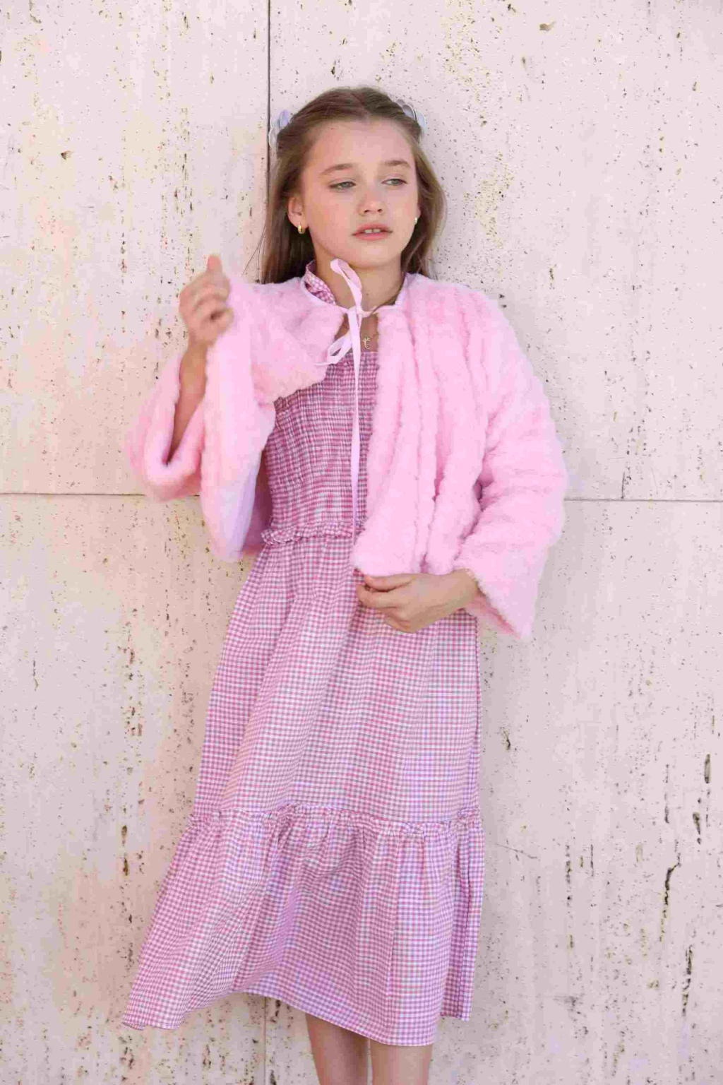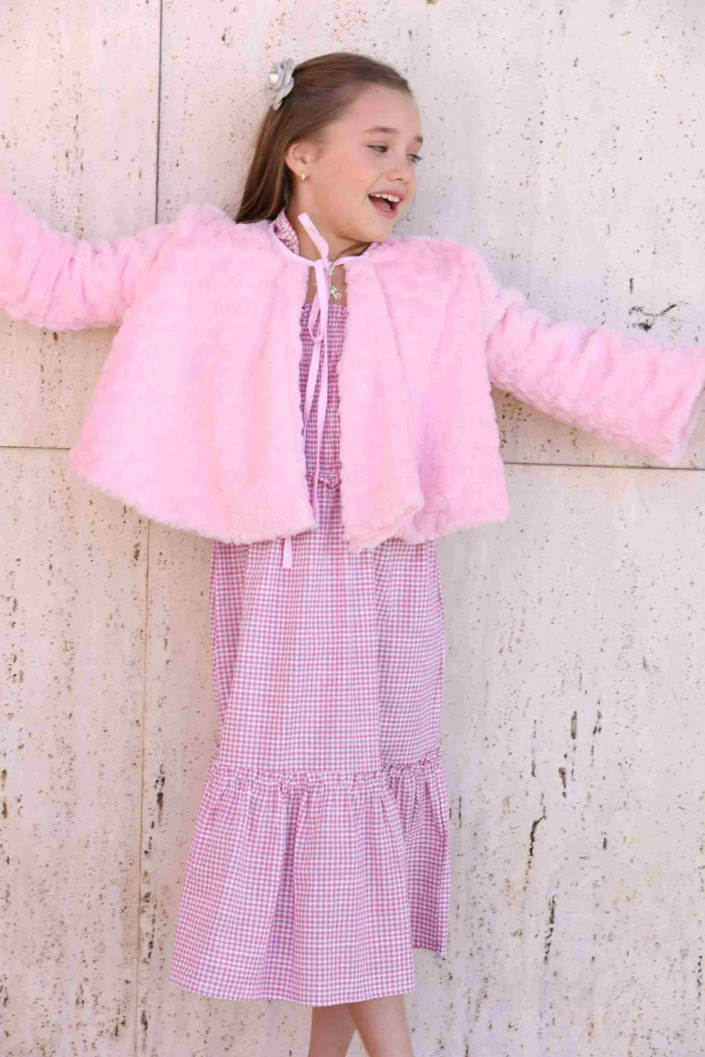 É a definição de elegância e aconchego. Confeccionado em tecido de pelúcia ultra macio, ele apresenta um tom rosa clássico e sofisticado, perfeito para compor looks em dias mais frios com muito estilo.
