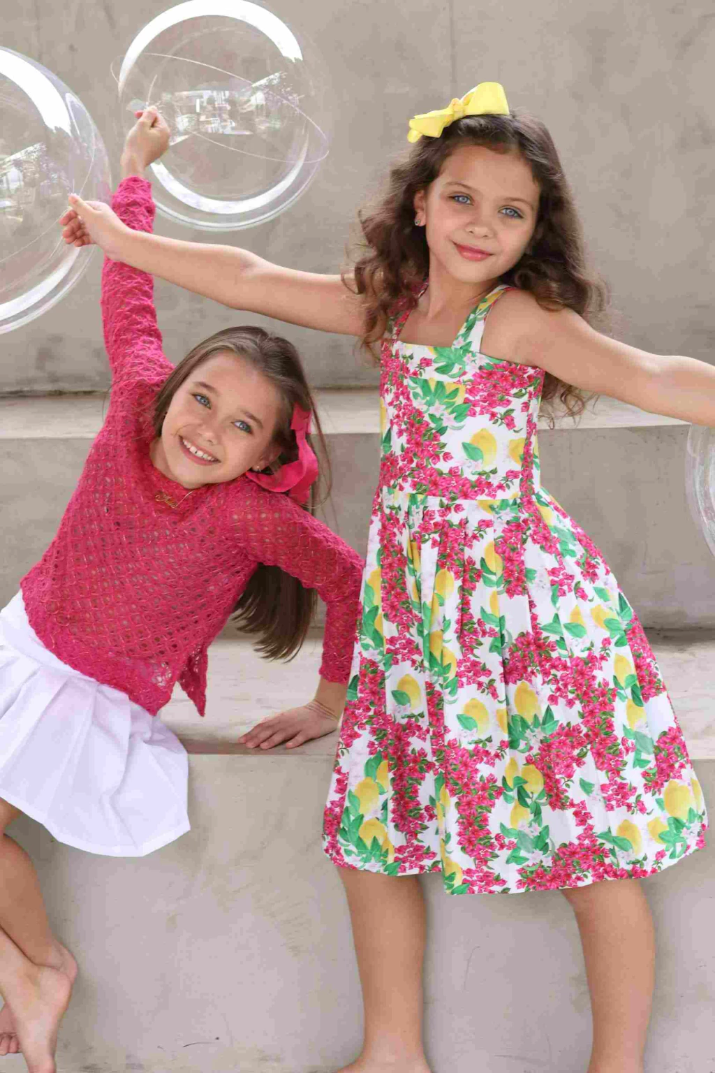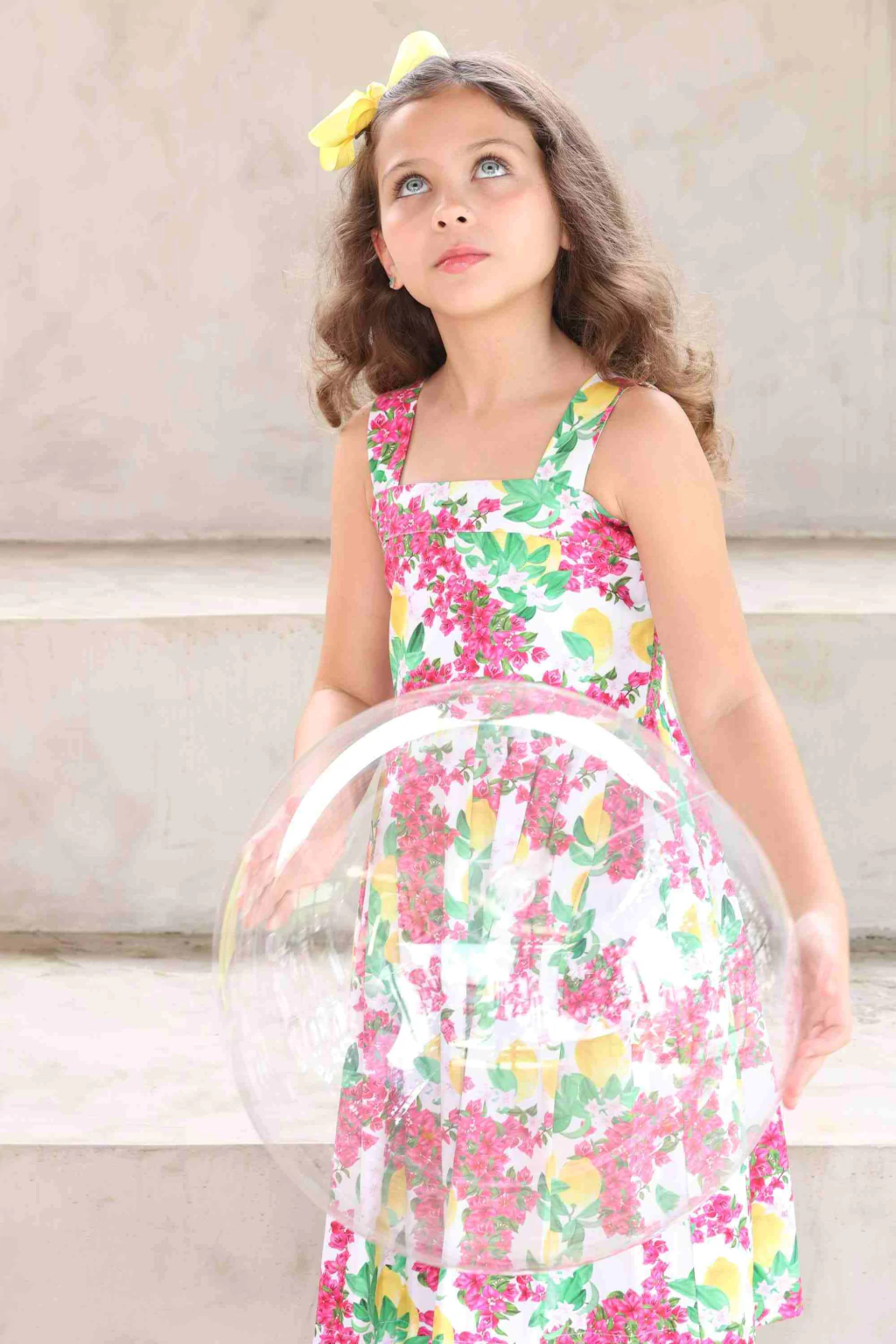 O Vestido Luna Limões traz uma estampa tropical alegre e fresca, perfeita para os dias de verão. Leve, confortável e cheio de charme para meninas.