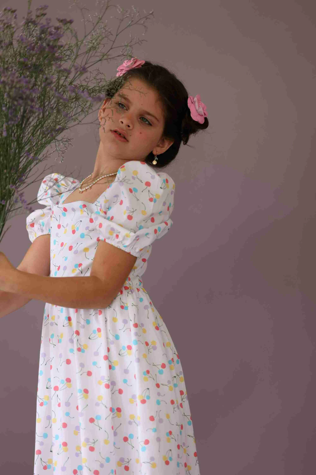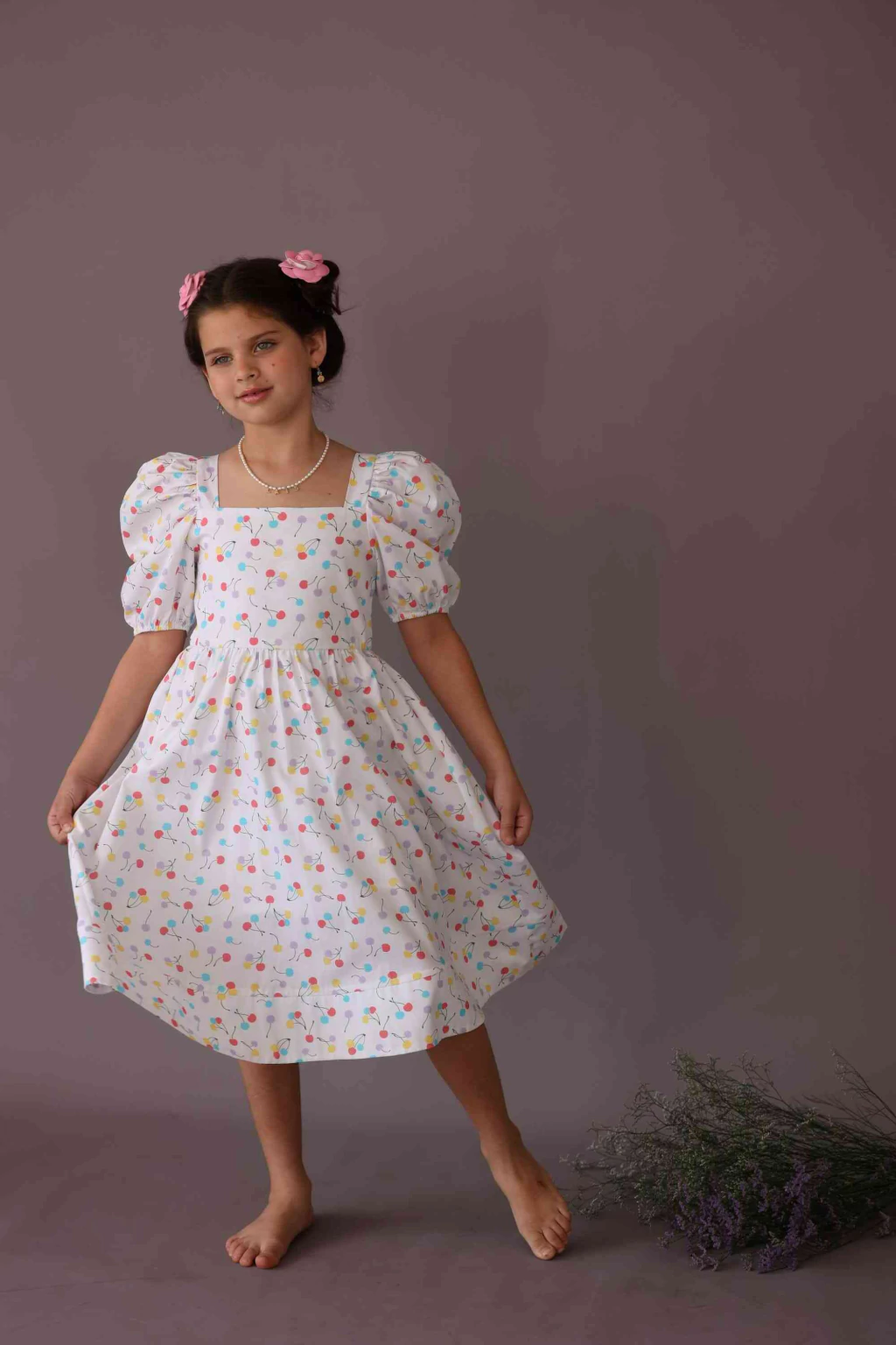 Este vestido infantil é a combinação perfeita entre charme clássico e alegria infantil. Com modelagem midi e um visual encantador, o destaque fica para as mangas bufantes estilo princesa que adicionam sofisticação ao look, tornando-o ideal para festas, aniversários, apresentações ou ensaios fotográficos.